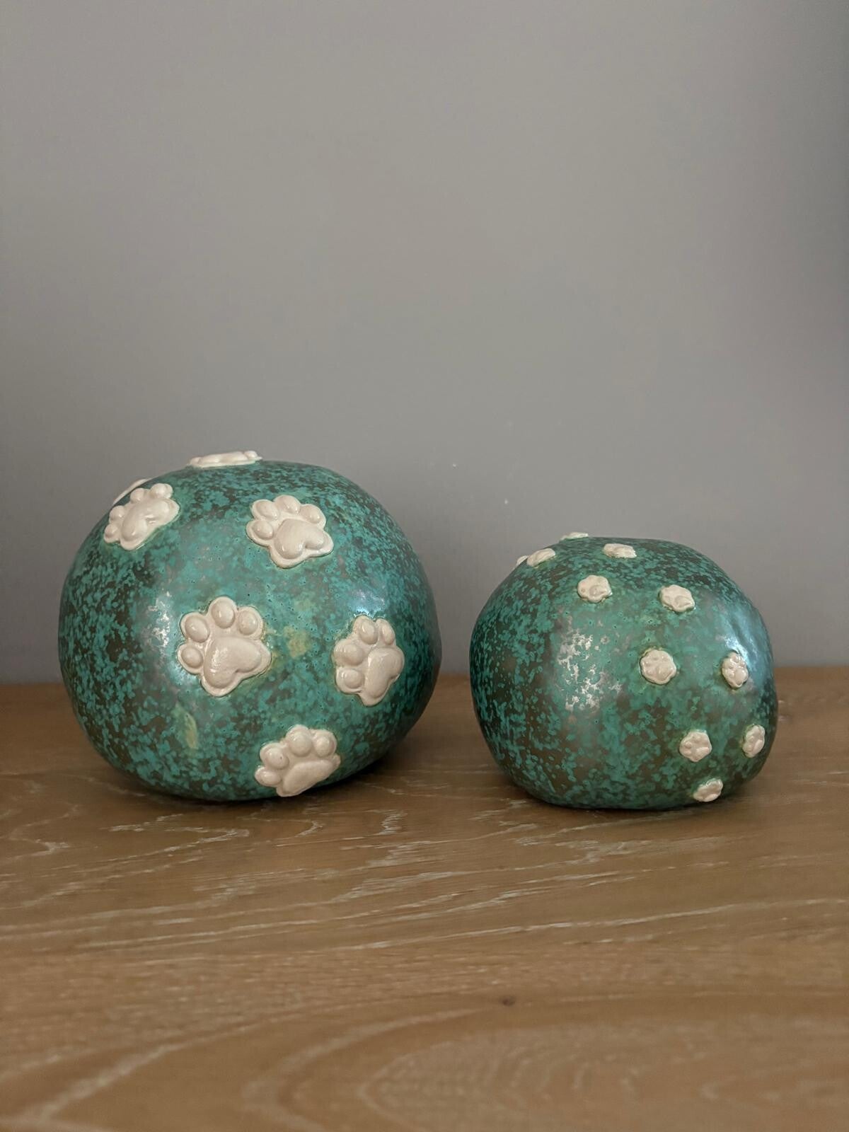 Handgemaakte dierenurn met pootafdruk